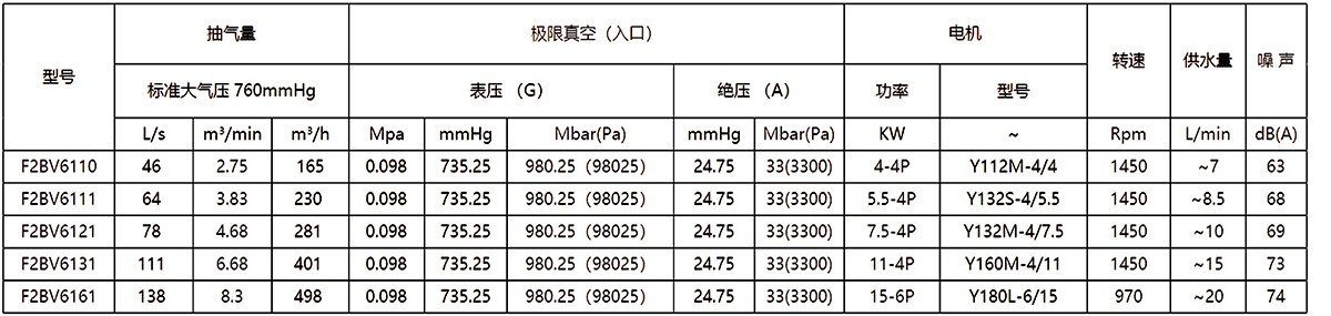 2.上列性能基于进气温度20℃,进水温度15℃,排气压力1013hpa的条件,被吸入气体为饱和空气。(饱和空气是指在对应吸入状态下,其相对湿度为100%的湿空气。)